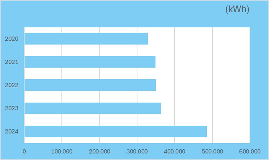 Para evitar el calentamiento global derivado de la emisión de gases de efecto invernadero, seguimos esforzándonos por reducir el consumo de energía eléctrica. En 2024, con el regreso cada vez más activo del trabajo presencial, podemos observar un aumento en el consumo de energía. Por este motivo, además de promover una mayor concienciación entre los colaboradores de la empresa, estamos implementando acciones internas de ahorro e incentivando el intercambio de buenas prácticas.